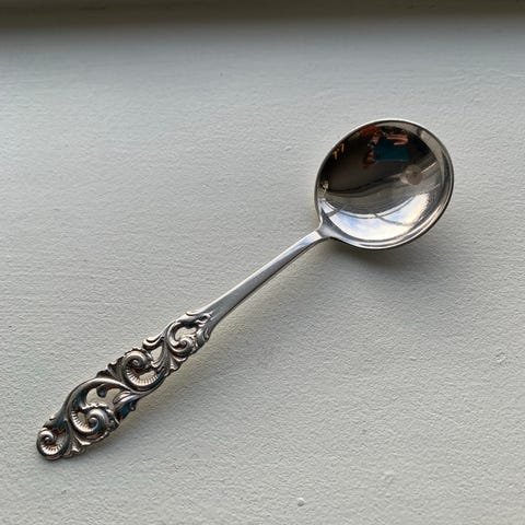 Nydelig ostehøvel i telesølv. 830 S. 23 cm.