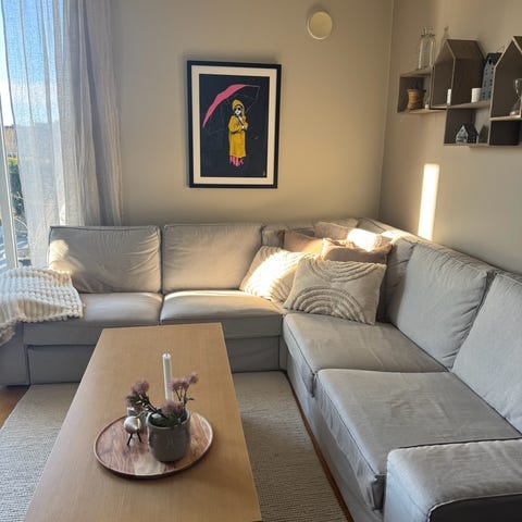 Selger en grå hjørnesofa fra Skeidar. Sofaen er kjøpt ny i 2021 og selges grunnet flytting. Sofaen er veldig pent brukt, og kan deles opp i 3 deler for enklere transport.