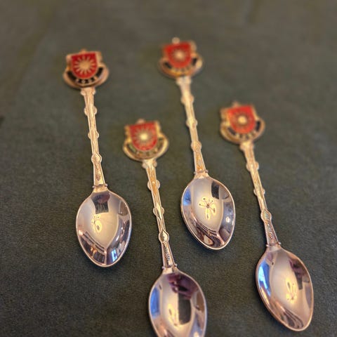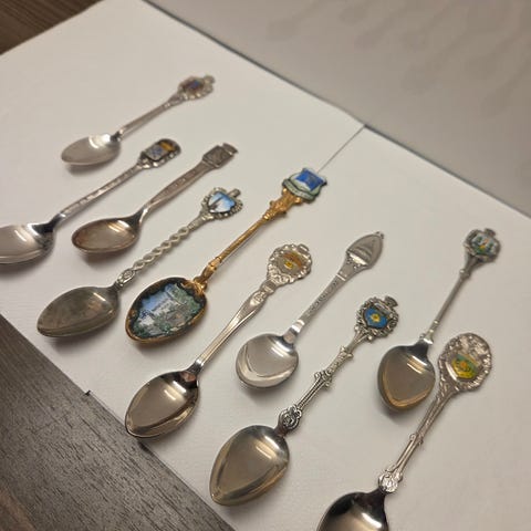 Pakke med 9 flotte souvenir-skjeer i original eske.