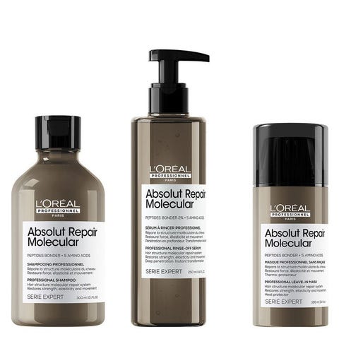 Teknologi for å reparere hårets molekylære struktur, beriket med peptidbindere og aminosyrer – egnet for alle typer skadet hår.