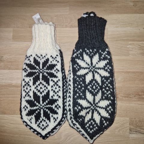 Selbuvotter i ull til dame lengde 25cm bredde 9,5cm grønn og offwhite