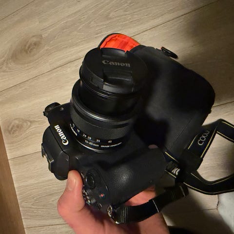 Canon EOS m50 med 55–200mm objektiv svart