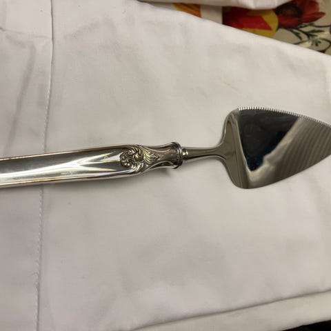 Selger meget pent brukt kakespade i mønsteret Elisabeth. 22 cm. 830s stempel.