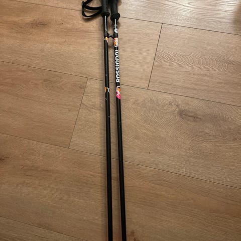 Atomic skistaver i rød farge. Passer til alpint / slalom. Staver med håndtak. Nesten ikke brukt