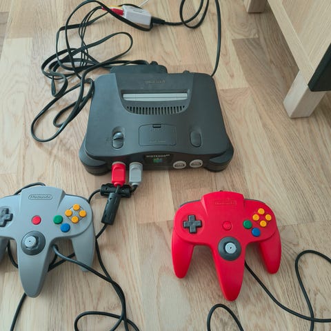 Nintendo 64 med tre spill og tre kontrollere selges.