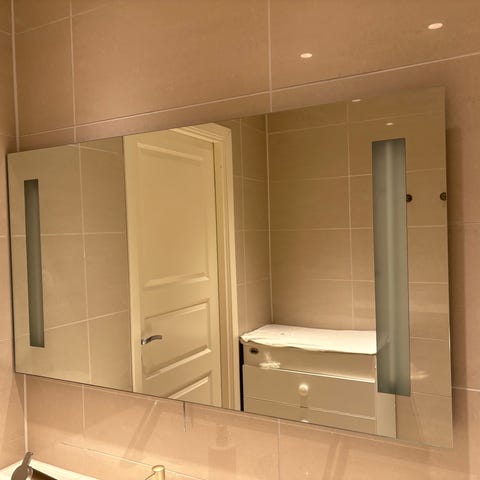Lysspeil 90 cm bredde og 65 cm høyde, med liten skade nederst på høyre side. (Se bilde)