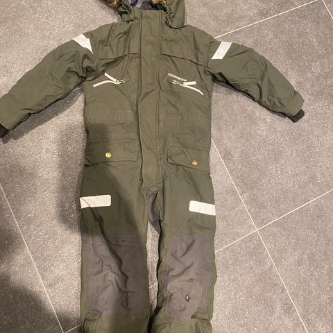 Gir bort vinterdress fra Polarn O Pyret i str 104. Buksen er slitt på begge knær, men det kan fikses av en hendig hånd med en lapp og tråd.
