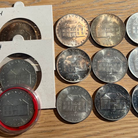 Selger en stor samling med minnemynter.