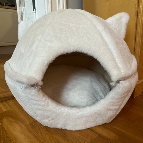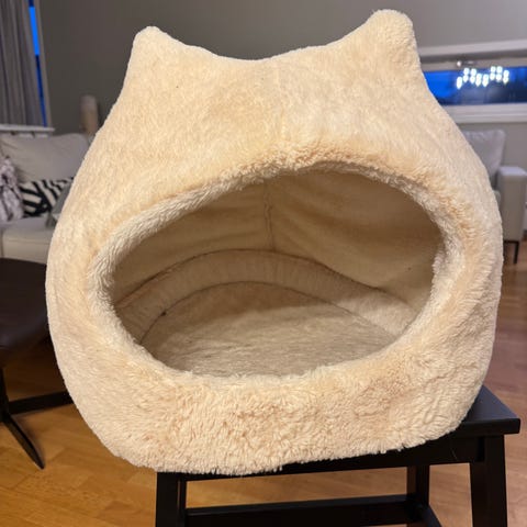 Selger denne kattehulen da katten min ikke lenger bruker den. Er mulig å ta av toppen så det blir en åpen seng.