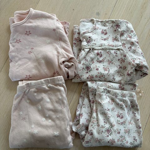 Newbie pysjsett barn 92 hvit bomull unisex