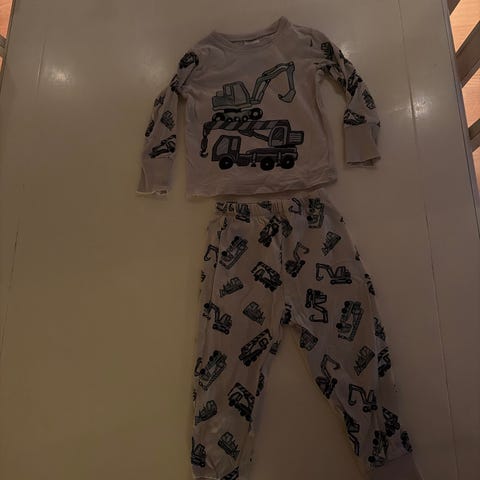 KappAhl pysjamas for gutt i størrelse 86. Sett med langermet overdel og bukse. Overdelen er blå og buksen har mønster. Laget i bomull for myk og behagelig bruk. Passer godt som nattøy for barn i aktuell størrelsesgruppe. Politi brannbil og ambulansetrykk