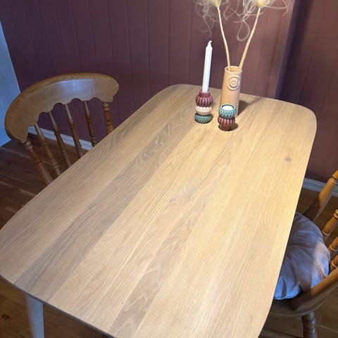 8 stoler selges. To av dem er malt og resten oljet. De trenger litt stramming og pussing etc. Selges samlet for 2000.