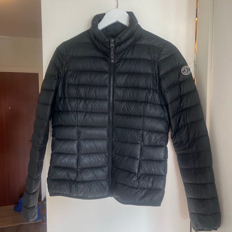 Jakken er nydelig på og er vasket godt. Det er allikevel en flekk foran ved glidelåsen, etter en lipgloss. Har her forsøkt vanlig vask og ikke aktiv flekkefjerning.