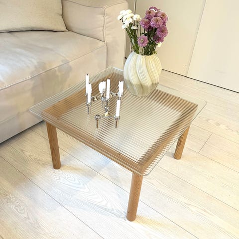Sjekker interessen for dette nydelige sofabordet med rillet glass fra HAY. Veldig pent brukt og vært storfornøyd.
