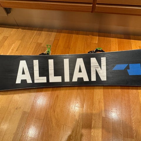 Allian Grind 139 snowboard med bindinger. Snowboardet har en lengde på 139 cm .