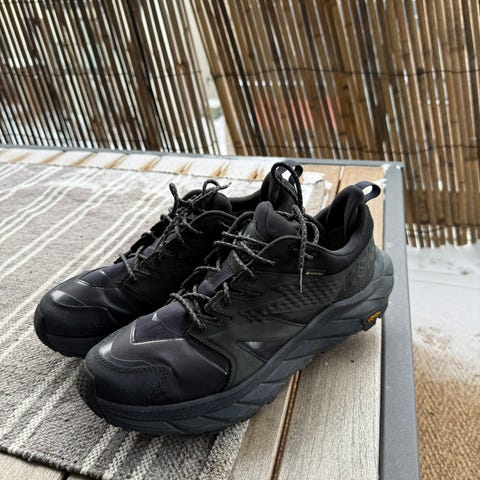 Hoka tursko Gore-Tex i størrelse 45. Modellen er en høy ankelmodell i grønn farge med kraftig yttersåle fra Vibram som gir godt grep. Overdelen er i tekstil og syntetisk materiale. Passer til bruk som joggesko eller fritidssko på variert underlag.