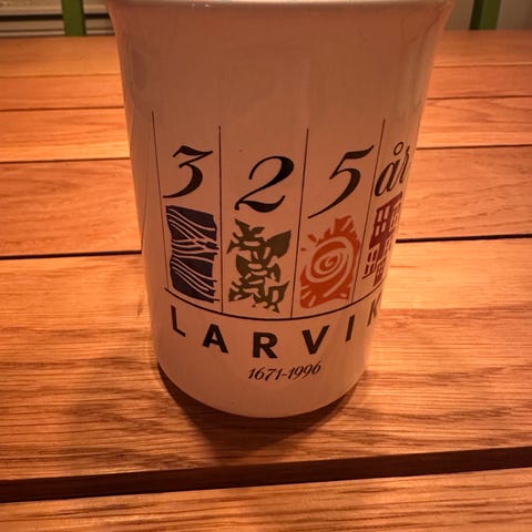 Jubileumskrus «Sandefjord 150 år 1845–1995». Har 6 krus som er ubrukte. Ikke oppgitt produsent. Pris kr 150,- pr krus eller kr 600,- for alle