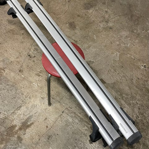 Thule sykkelstativ for to sykler. Passer til Volvo XC70, men, ifølge Thansen, også andre bilmodeller med takrail. Stativet er meget lite brukt og fremstår som nytt.