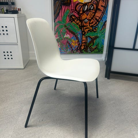 Rundt femti stoler selges. Helt grei stand, de er til overs, og selges derfor rimelig. Tyve kroner pr stol