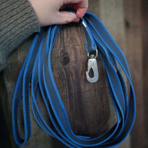 Flettet hundeline i nylon med metallkrok. Linen kommer i to fargevarianter: gul/blå og lilla/svart. Egnet som line til hund, med kraftig krok for feste i halsbånd eller sele. Passer til daglig bruk og turer med hund.