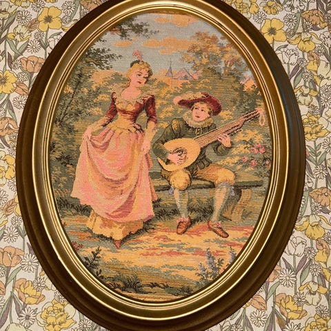 Vakkert bilde i gobelin, med eksklusiv ramme.