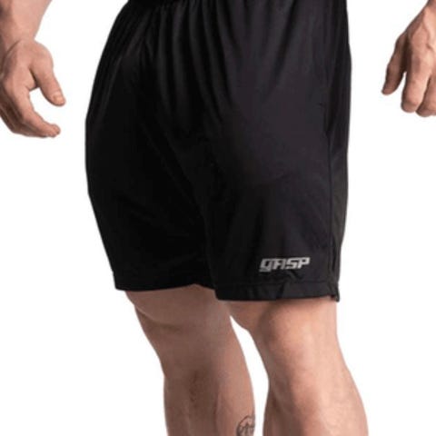 Gasp treningsshorts for herre i størrelse XXL. Shortsen er svart med kontrastfargede detaljer og trykk med Gasp-logo og tallmotiv på benet. Modellen har snøring i livet for justering av passform. Lommer med glidelås. Egnet til fitness og annen trening. Materialet fremstår som lett og funksjonelt, egnet for innendørs og utendørs bruk.
