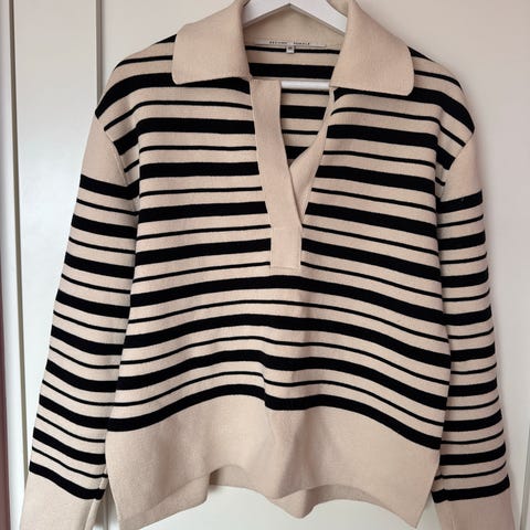 Fin genser fra Kashmina som ser ut som ny. Med perlestrikk på armer og midt på genser. Normal i størrelsen. Ledig modell. Bildene mine ble litt mørke.