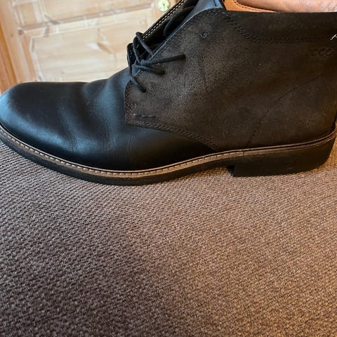 Ecco støvler i størrelse 46. Klassiske, ankelhøye støvler i svart farge med elastikk i sidene for enkel av- og påtaking. Såle i syntetisk materiale med mønster for bedre grep. Passer til hverdagsbruk og mer formelle anledninger.