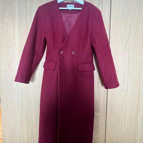 NA-KD kåpe for dame i størrelse 40. Kåpen er beige og laget i polyester. Den har klassisk krage, skulderputer, splitt bak, dobbeltspent knappelukking foran og avtagbart knytebelte i livet. Skrålommer i sidene og helfôret innside. Lang oversized kåpe. Passer som yttertøy i overgangssesonger og milde vinterdager.