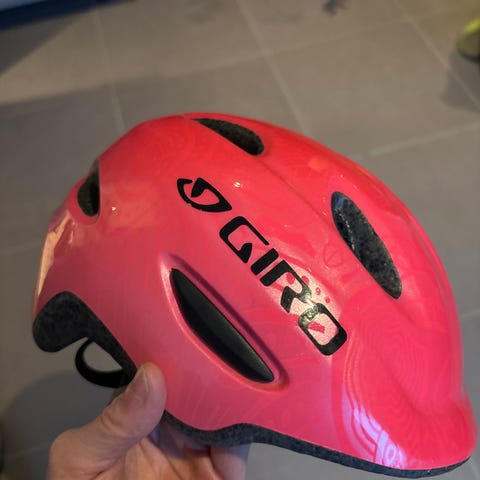 Sykkelhjelm til barn 50-57cm brukt.Litt ødelagt bak, men fikset se bilde.