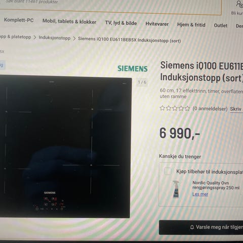 Siemens iQ100 induksjonstopp selges. 60cm bredde, pent brukt. Selges grunnet overgang til større topp.