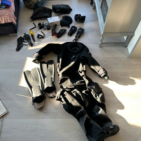 Komplett dykkersett - tørrdrakt str. S, ventil, flaske, BCD, computer og resten