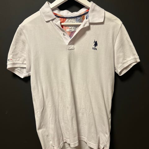 U.S. Polo Assn. pique poloskjorte for herre i størrelse M. Skjorten er blå og laget av bomull, med klassisk krage og kort erm. Typisk pique-struktur i stoffet og brodert logo på brystet. Passer til hverdagsbruk og uformelle anledninger.