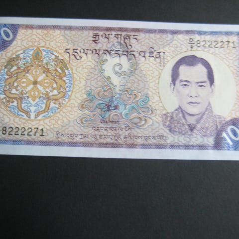Royal Monetary Authority of Bhutan 1 ngultrum seddel. Sedlene viser tradisjonell bhutansk arkitektur på den ene siden og dekorative motiver med drager og ornamenter på den andre siden. Egner seg som samleobjekt innen utenlandske pengesedler og numismatikk.