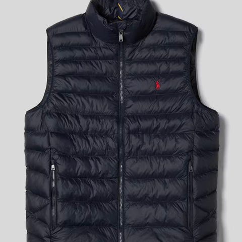 Ralph Lauren vest for herre i størrelse M. Vesten er blå og laget i nylon. Den har vattert, quiltet design med høy krage og glidelås i front. Passer som et ekstra lag over genser eller skjorte i kjøligere vær. Kjempefin blåfarge, som på bildet. Selges for 2500,-. Den er bare brukt noen få ganger. Nypris 4299,- på Ferner Jacobsen i fjor.