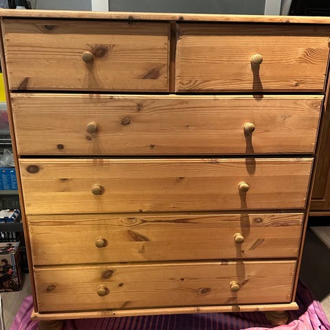 Gammel og godt brukt kommode selges. Fire skuffer. Fungerer fint.