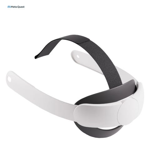 Head strap er laget for bruk med Meta Quest-serien (Q3/Q3S). Det har et justerbart design som gjør at brillene kan vippes opp og ned uten å ta av hele settet. Polstrede kontaktflater gir støtte rundt bakhodet.