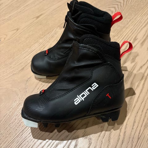 Alpina langrennsstøvler T5 plus . Støvlene har snøring og glidelåsflapp foran for å beskytte mot snø og fukt. Overdelen er i syntetisk materiale med isolerende Thinsulate-fôr for ekstra varme. Som nye!