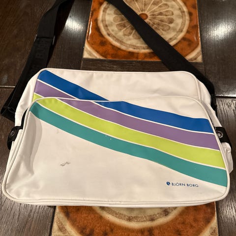 Fin veske 32 cm høy 27 cm bred og bunnen 7 cm. kR 80