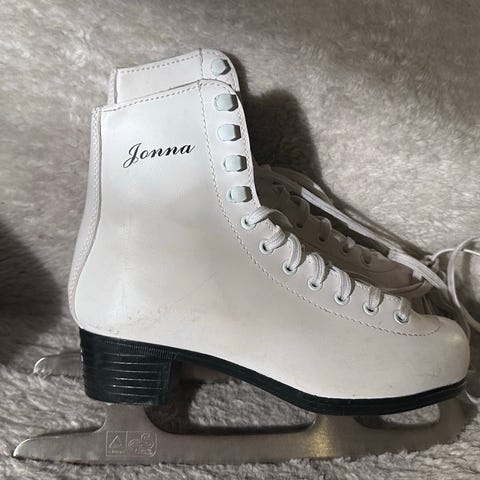 CCM kunstskøyter for barn i størrelse 33. Skøytene er hvite med rosa detaljer og blomsterdekor. Overdel i syntetisk materiale med snøring for justerbar passform. Blad i metall med tagger foran, egnet til kunstløp eller lek på isen. Passer til barn som bruker skostørrelse 33.