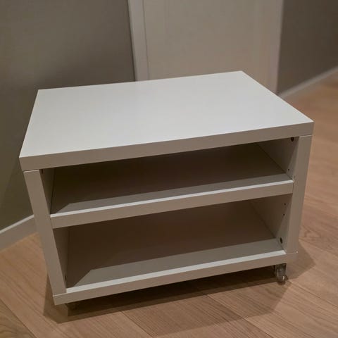 Pent brukt tv-bord med hjul( avtagbar) selges. Høydemål inkl. hjul er 36,5 cm.