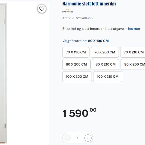 Jeg selger en helt ny kompakt innerdør. Kjøpt på OBS bygg. Feil størrelse og fikk ikke levert den tilbake på grunn av at den var utpakket.