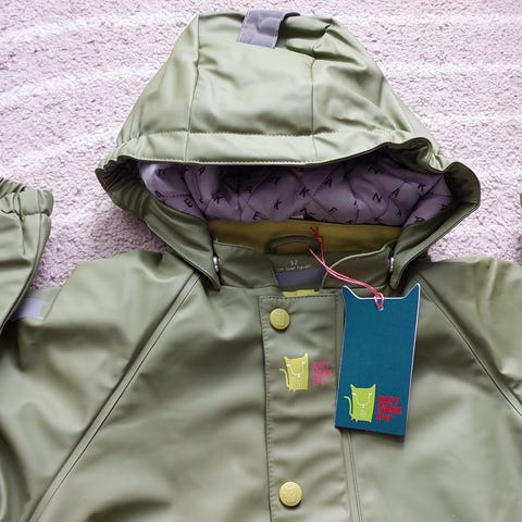 Den beste regndressen i merket tiny trolls. Kanin lue og Kivat 2 lags ull votter 🥰 Ser helt ny ut og luen og. Kan brukes fra 1 år til 3 år. Så den varer lenge. For på innsiden og utrolig fin. Det er to sides glidelås, så dressen er super enkel for både voksene og barn å ta på.