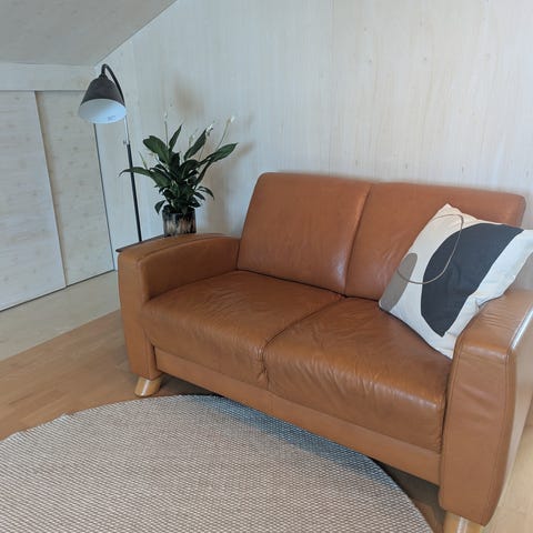 Veldig pen fasong på sofaen. Veldig glad i den! Beklageligvis kom alle flekkane ekstra godt fram på bildet - men du blir iallfall ikkje skuffa då😅 Hull under etter forrige eiger - letter arbeidet med å få ut eigendeler som har forsvunnede ned langs sidene. Den blir finare med ein rens!! Me har gjort det før og det blei meget hyggelig, men med tre barn suger den til seg alle flekker den kan!