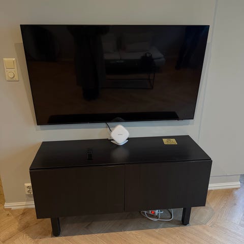 Nesten ubrukt Smart TV fra Samsung, selges pga flytting. Kjøpt ny i 2024. Små merker på de øvre hjørnene grunnet skraping i transport av TV-en (bilder), synes nesten ikke. Selges med fjernkontroll