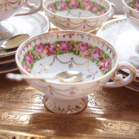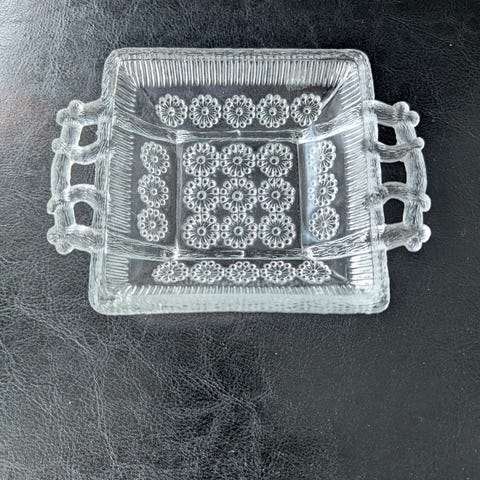 Porselen krukke fra tidlig 1950 tallet med utsmykking.