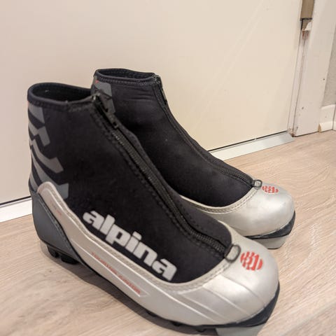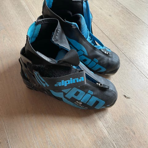 Alpina Racing langrennsstøvler i størrelse 37. Modellen er laget for klassisk langrenn og har overtrekk med glidelås foran som beskytter mot snø og fukt. Støvlene har ankelstropp med borrelås for bedre støtte og passform. Lite, og pent brukt.