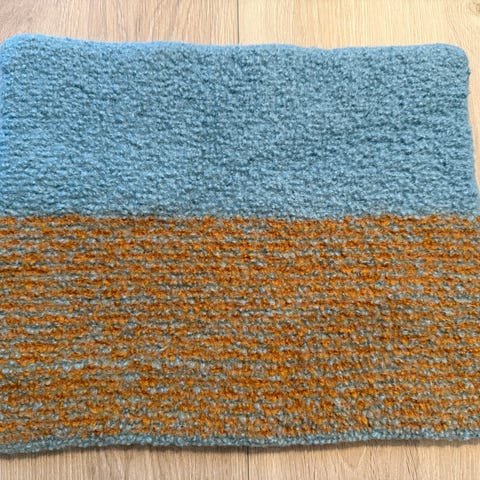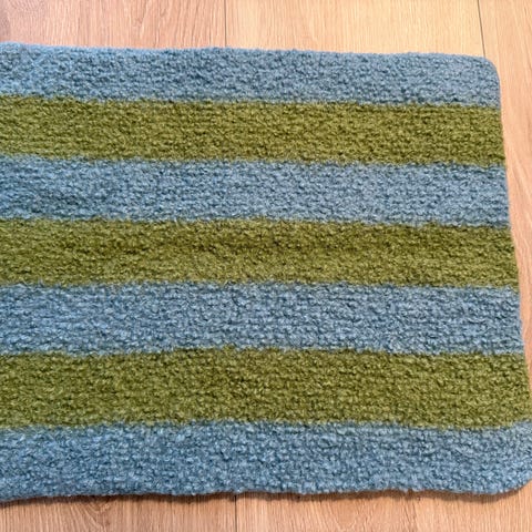 Hjemmestrikket, tovet sitteunderlag i 100% ull.