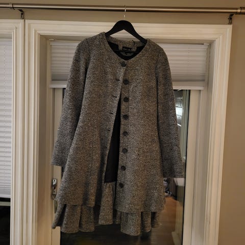 Selger denne meget vakre vinterkåpen fra Olars Ulla på vegne av kona (grunnet sykdom). Den er bare brukt 3-4 ganger. Fremstår som ny. 100% ull. Helknappet (ingen glidelås). Overdelen har en figurnær passform uten krage og hette. Skjørtet i kåpen har god vidde med en ekstra volange nederst. Farge svart. Passer til en lang person. Konas høyde er 175 cm. Gå gjerne inn på Olars Ullas nettsted for å se lignende produkter og dagens priser.