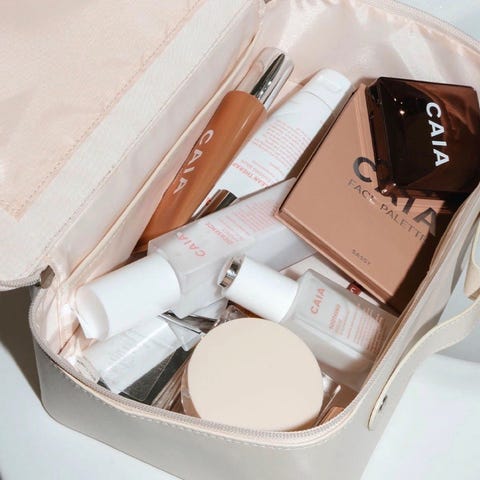 CAIA toalettmapper sett i to størrelser. Den ene mappen er lilla, den andre er lyseblå. Begge har glanset overflate og lukkes med glidelås. Egner seg til oppbevaring av sminke, toalettartikler eller småting på reise og hjemme.
